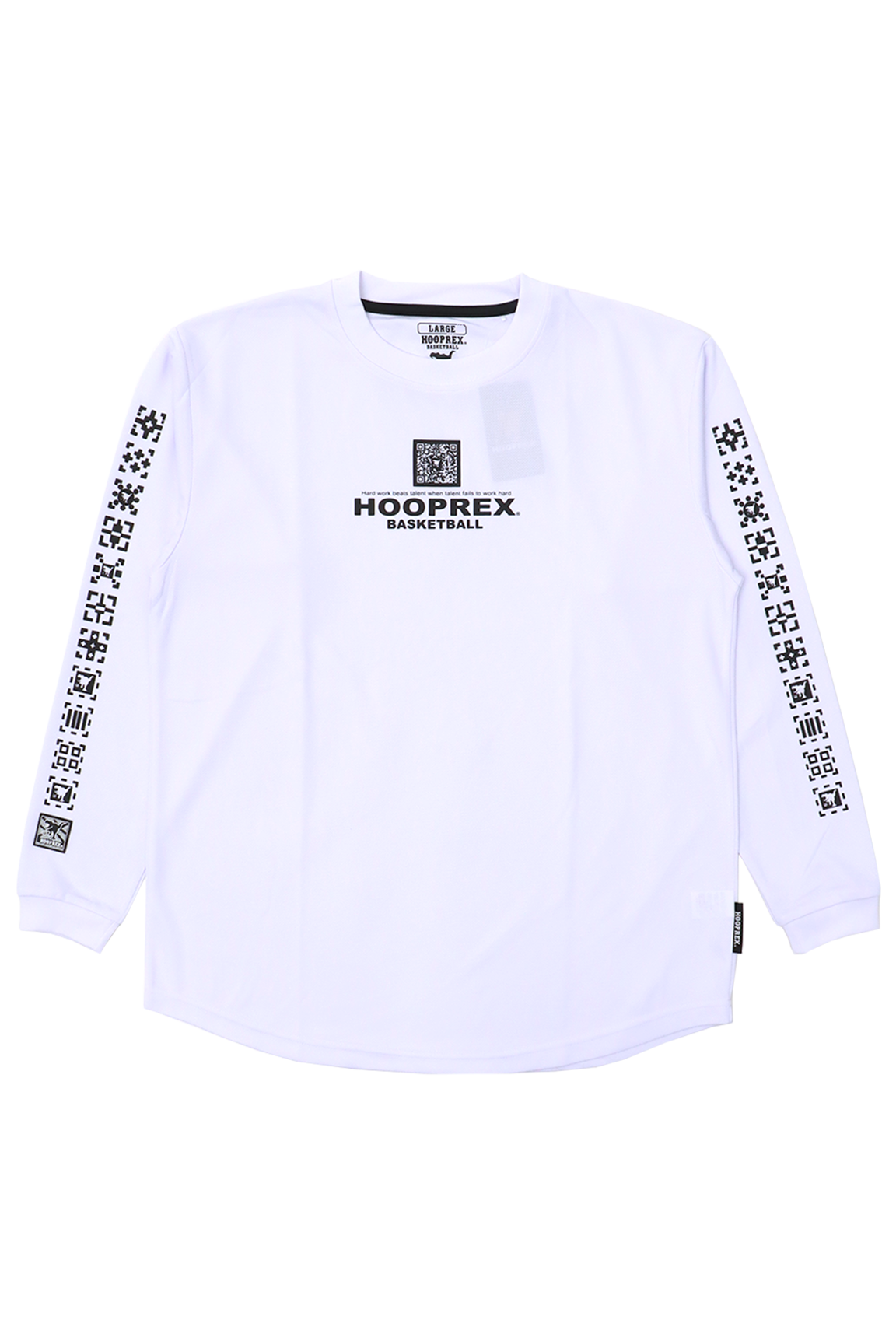 HOOPREXのスタンダードなロングスリーブシャツ。裾のラウンドがスタイルアップに、丈短パンツとの相性は抜群です。思わず読み込みたくなる、QRコードを落とし込んだデザインが印象的な、新しい時代を感じさせるアイテムです。■プリントカラーホワイト…ブラックネイビー…ホワイトブラック…ホワイトテネシー…ホワイトNYブルー…ホワイトグリーン…ホワイト■サイズレンジS・M・L・XL・2XL■付属シリコンワッペン(右袖口)刺繍(背中首元)ピスネーム(本体左下)