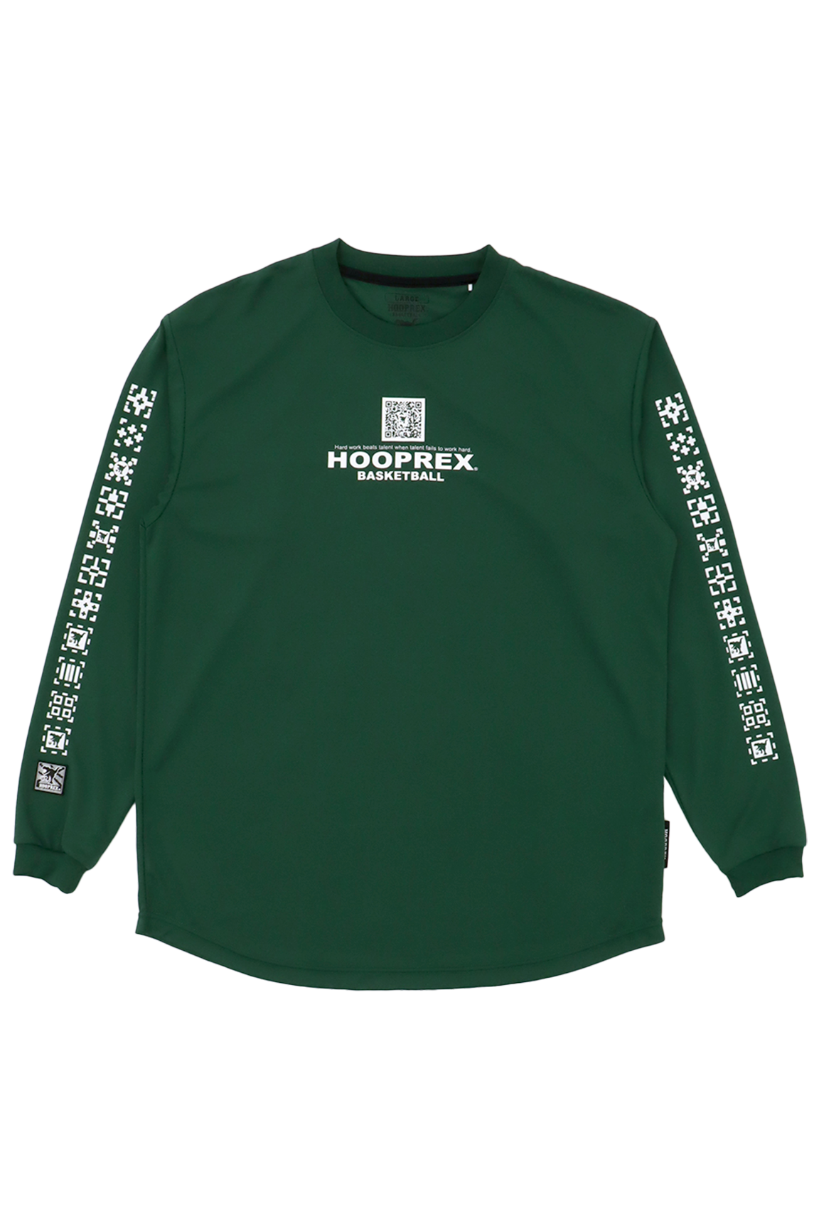 HOOPREXのスタンダードなロングスリーブシャツ。裾のラウンドがスタイルアップに、丈短パンツとの相性は抜群です。思わず読み込みたくなる、QRコードを落とし込んだデザインが印象的な、新しい時代を感じさせるアイテムです。■プリントカラーホワイト…ブラックネイビー…ホワイトブラック…ホワイトテネシー…ホワイトNYブルー…ホワイトグリーン…ホワイト■サイズレンジS・M・L・XL・2XL■付属シリコンワッペン(右袖口)刺繍(背中首元)ピスネーム(本体左下)