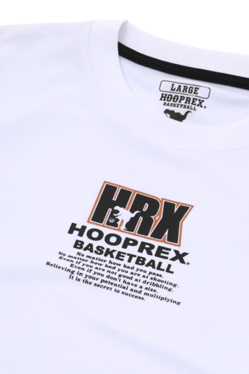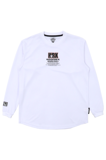 HOOPREXのスタンダードなロングスリーブシャツ。裾のラウンドがスタイルアップに、丈短パンツとの相性は抜群です。シンプルなテキストデザインがスマートな印象。
