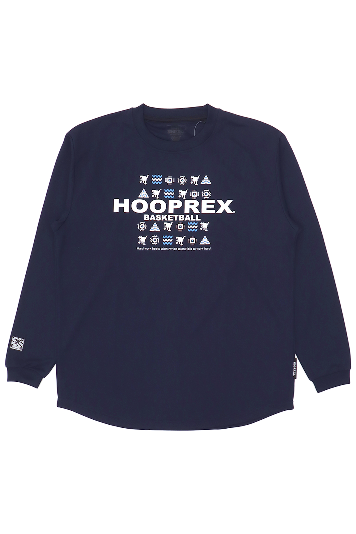 HOOPREXのスタンダードなロングスリーブシャツ。裾のラウンドがスタイルアップに、丈短パンツとの相性は抜群です。ネイティブ柄をモチーフにしたデザインがHOOPREXらしいアイテム。