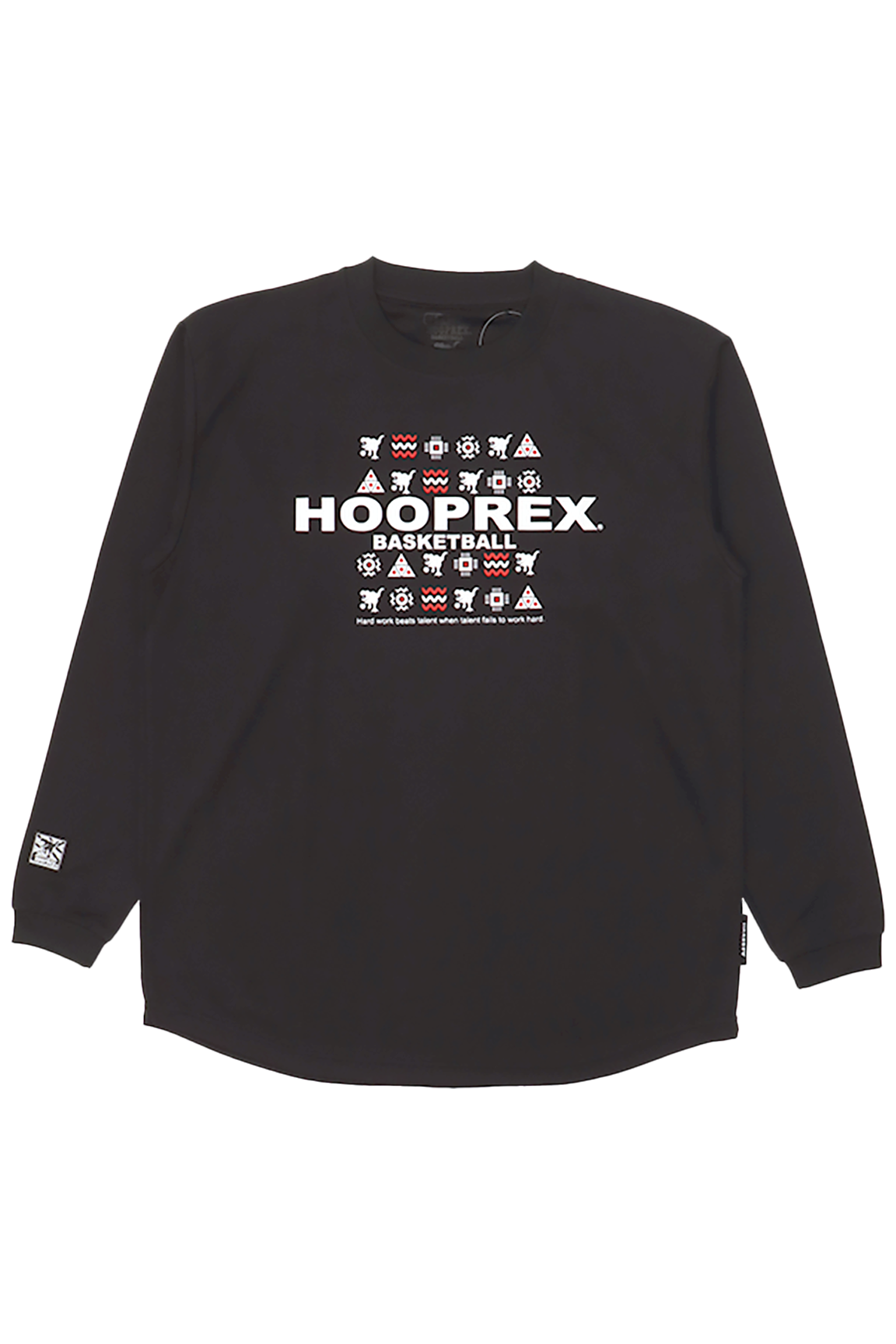 HOOPREXのスタンダードなロングスリーブシャツ。裾のラウンドがスタイルアップに、丈短パンツとの相性は抜群です。ネイティブ柄をモチーフにしたデザインがHOOPREXらしいアイテム。