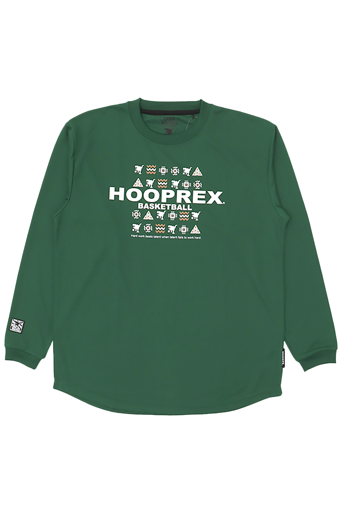 HOOPREXのスタンダードなロングスリーブシャツ。裾のラウンドがスタイルアップに、丈短パンツとの相性は抜群です。ネイティブ柄をモチーフにしたデザインがHOOPREXらしいアイテム。