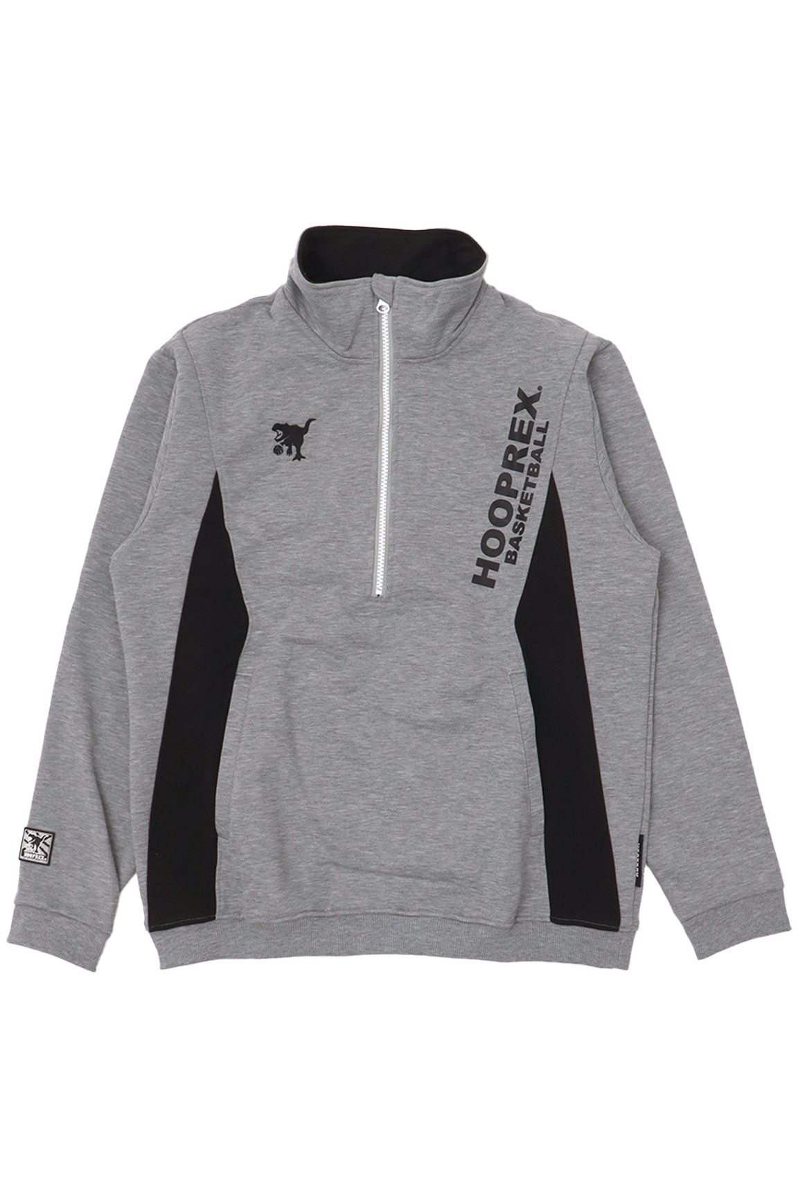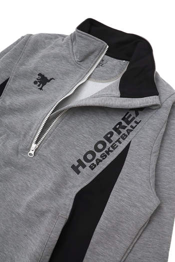 HOOPREXのスタンダードなハーフジップのスウェットパーカー。接肌面が微起毛になっているので、肌触りが良く保温性の高いアイテム。両サイドにポケット付き。スリムフィットタイプ。■プリントカラーグレー…ブラックネイビー…ホワイトブラック…ホワイト■サイズレンジS・M・L・XL・2XL■付属シリコンワッペン(右袖口)刺繍(右胸、背中首元)ピスネーム(本体左下)