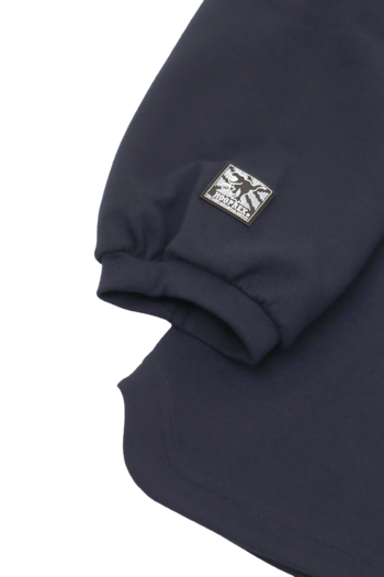HOOPREXのスウェットシャツ。軽くてハリ感のある素材なのでお手入れがしやすくプラクティスウエアにおすすめ。エンボス加工された恐竜のシルエットと文字が印象的なアイテム。身幅がゆったりめでボックス型のルーズフィットタイプ。■サイズレンジS・M・L・XL・2XL■付属シリコンワッペン(右袖口)刺繍(背中首元)ピスネーム(本体左下)
