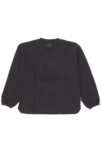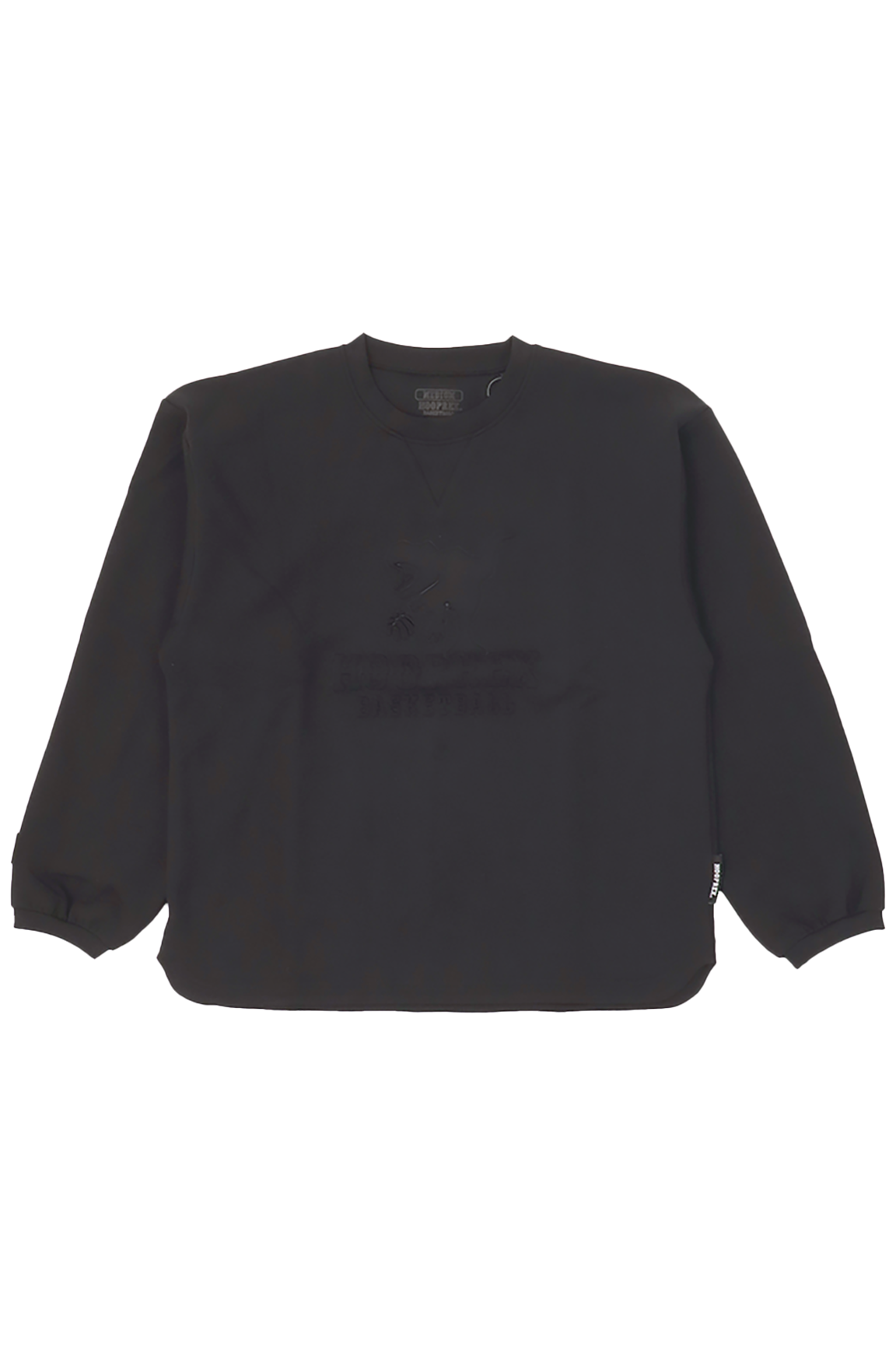 HOOPREXのスウェットシャツ。軽くてハリ感のある素材なのでお手入れがしやすくプラクティスウエアにおすすめ。エンボス加工された恐竜のシルエットと文字が印象的なアイテム。身幅がゆったりめでボックス型のルーズフィットタイプ。■サイズレンジS・M・L・XL・2XL■付属シリコンワッペン(右袖口)刺繍(背中首元)ピスネーム(本体左下)