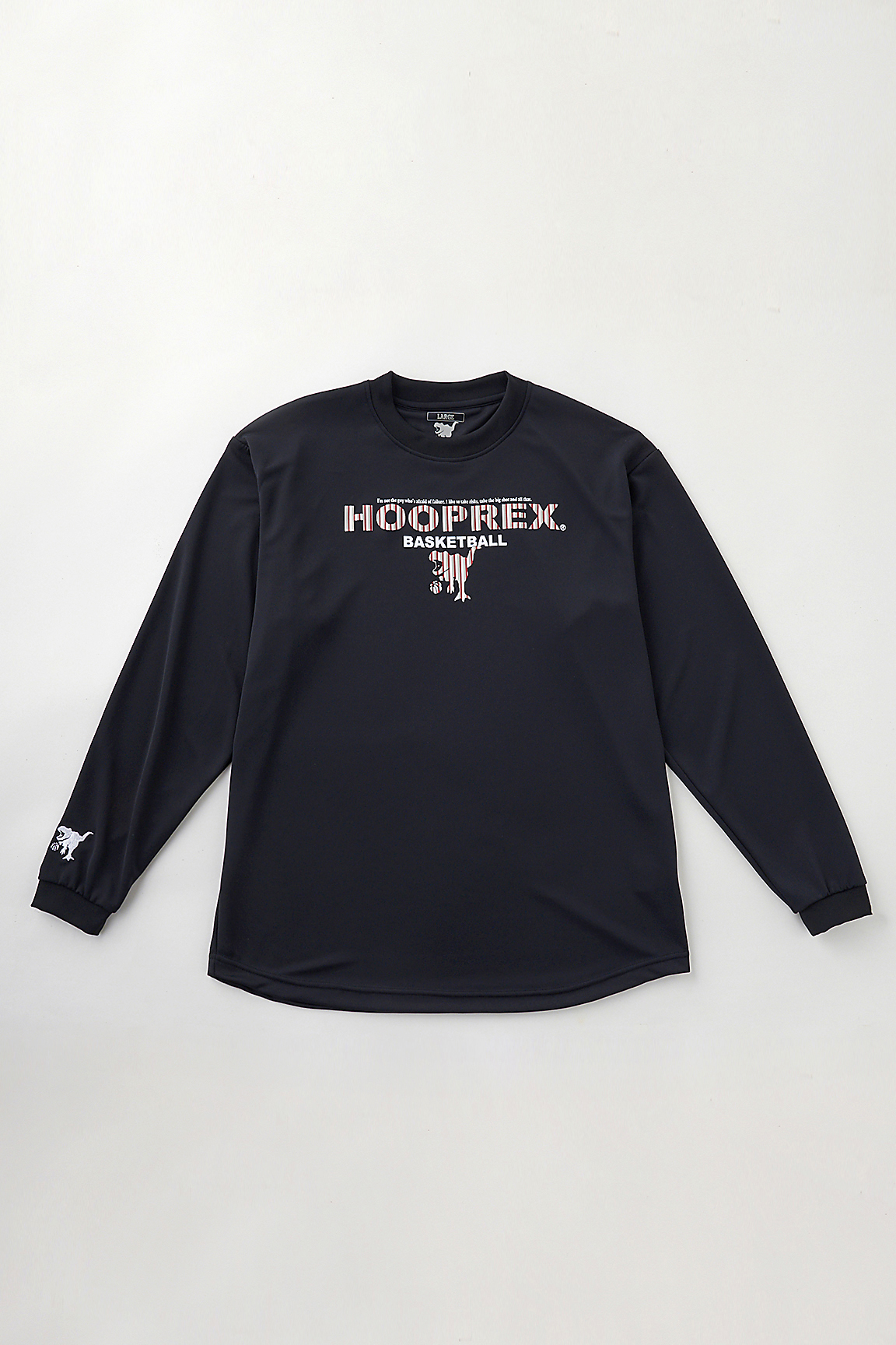 HOOPREXのスタンダードなロングスリーブシャツ。ストライプ柄でプリントされたHOOPREXのロゴが目を引くデザイン。裾のラウンドがスタイルアップに、丈短パンツとの相性は抜群です。■プリントカラーホワイト…ブラック、テキサス、クリムゾンNYブルー…ホワイト、Dスカイ、テネシーブラック…ホワイト、レッド、グレー■サイズレンジS・M・L・XL・2XL■付属刺繍(右袖口、背中首元)
