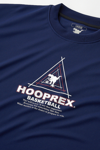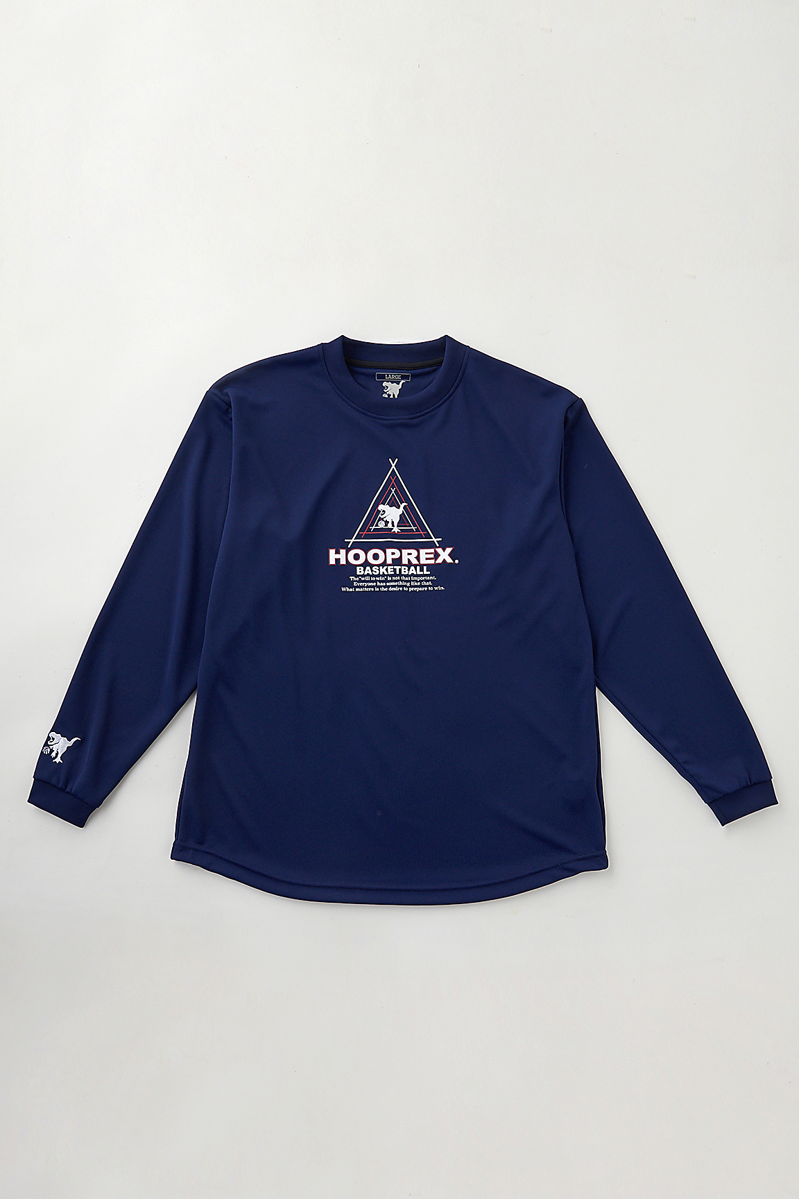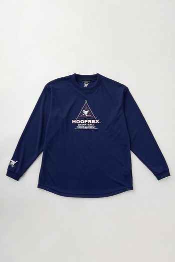 HOOPREXのスタンダードなロングスリーブシャツ。三角形のモチーフとHOOPREXのロゴがデザインされたアイテム。裾のラウンドがスタイルアップに、丈短パンツとの相性は抜群です。