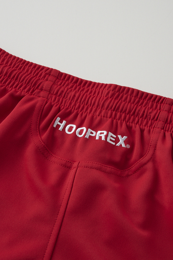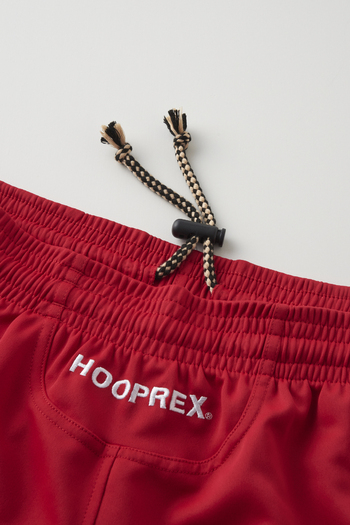 HOOPREXのバギーパンツ。伸縮性の高い素材を使用したバギーパンツはすそ丈の短いタイプ。両サイドにポケット付き。ウエスト紐にはコードストッパー付き。プリント加工のない無地タイプです。■サイズレンジ2XS・XS・S・M・L・XL・2XL・3XL■付属刺繍(右もも、背面ウエスト下部)