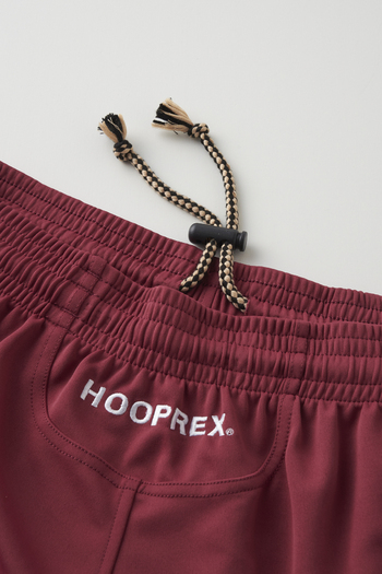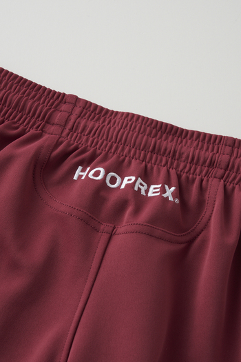HOOPREXのバギーパンツ。伸縮性の高い素材を使用したバギーパンツはすそ丈の短いタイプ。両サイドにポケット付き。ウエスト紐にはコードストッパー付き。プリント加工のない無地タイプです。■サイズレンジ2XS・XS・S・M・L・XL・2XL・3XL■付属刺繍(右もも、背面ウエスト下部)