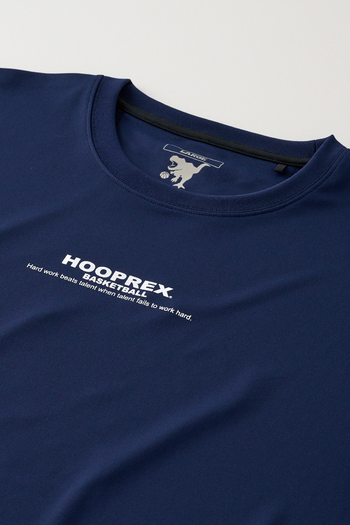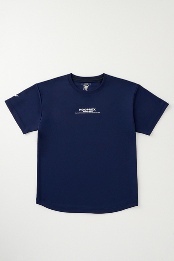 HOOPREXのスタンダードなTシャツ。裾のラウンドがスタイルアップに、丈短パンツとの相性は抜群です。
