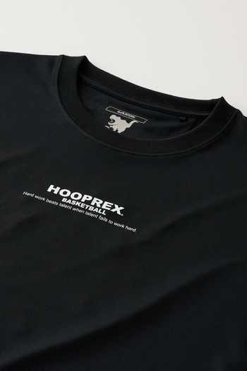 HOOPREXのスタンダードなTシャツ。裾のラウンドがスタイルアップに、丈短パンツとの相性は抜群です。