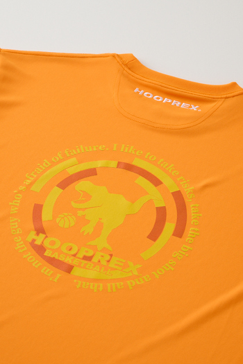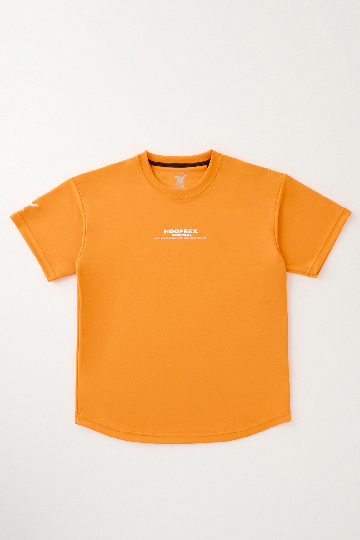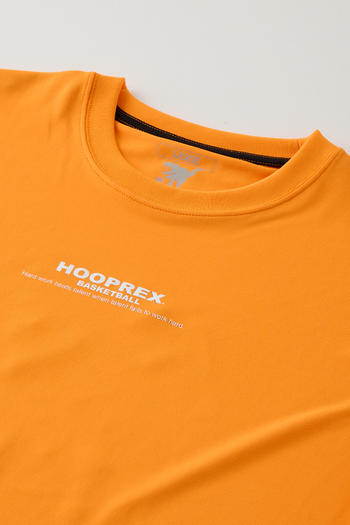 HOOPREXのスタンダードなTシャツ。裾のラウンドがスタイルアップに、丈短パンツとの相性は抜群です。