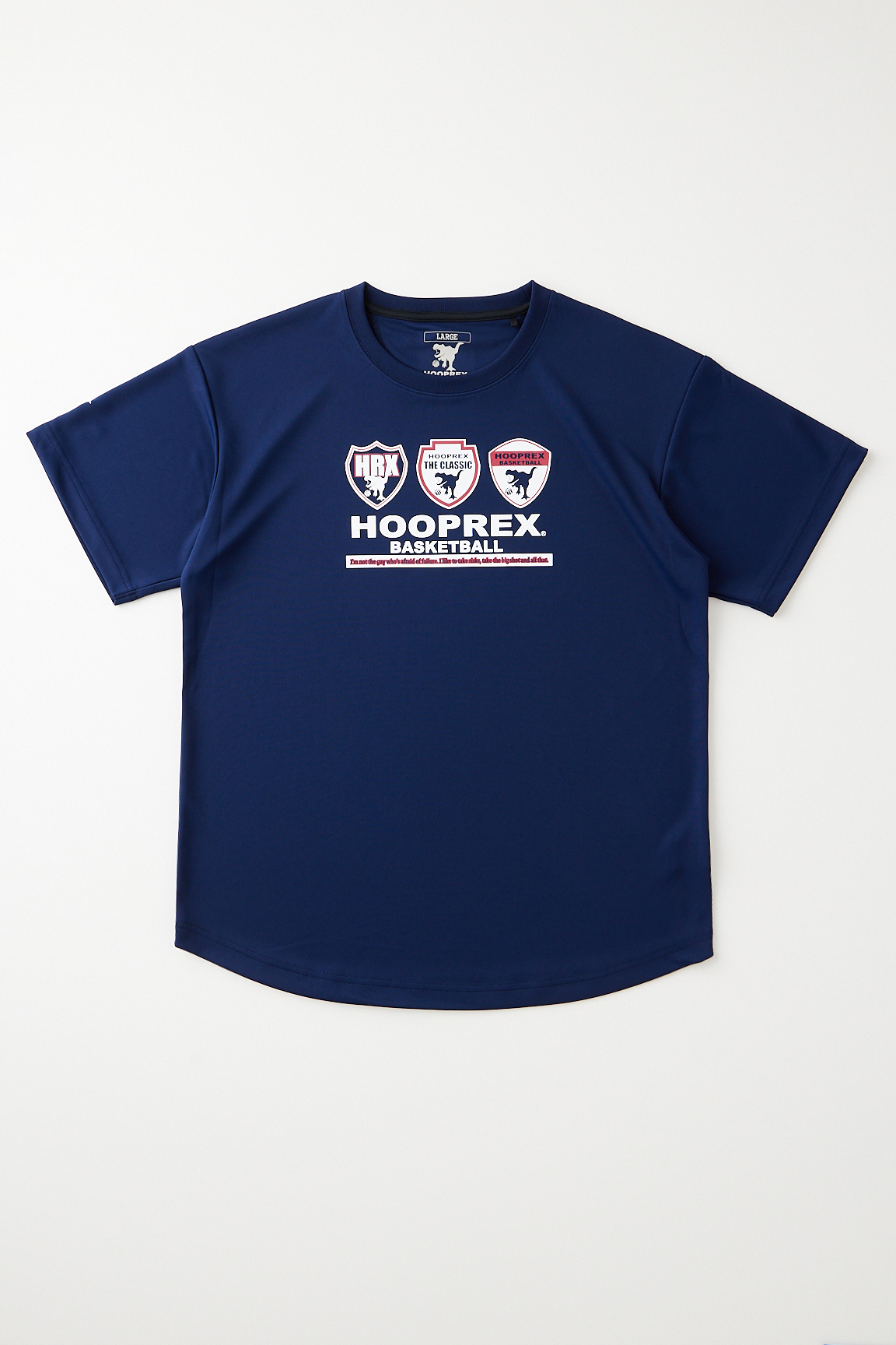 HOOPREXのスタンダードなTシャツ。裾のラウンドがスタイルアップに、丈短パンツとの相性は抜群です。■プリントカラーホワイト…ネイビー、ワインネイビー…ホワイト、ワインブラック…ホワイト、ワイン■サイズレンジS・M・L・XL・2XL■付属刺繍(右袖、背中首元)