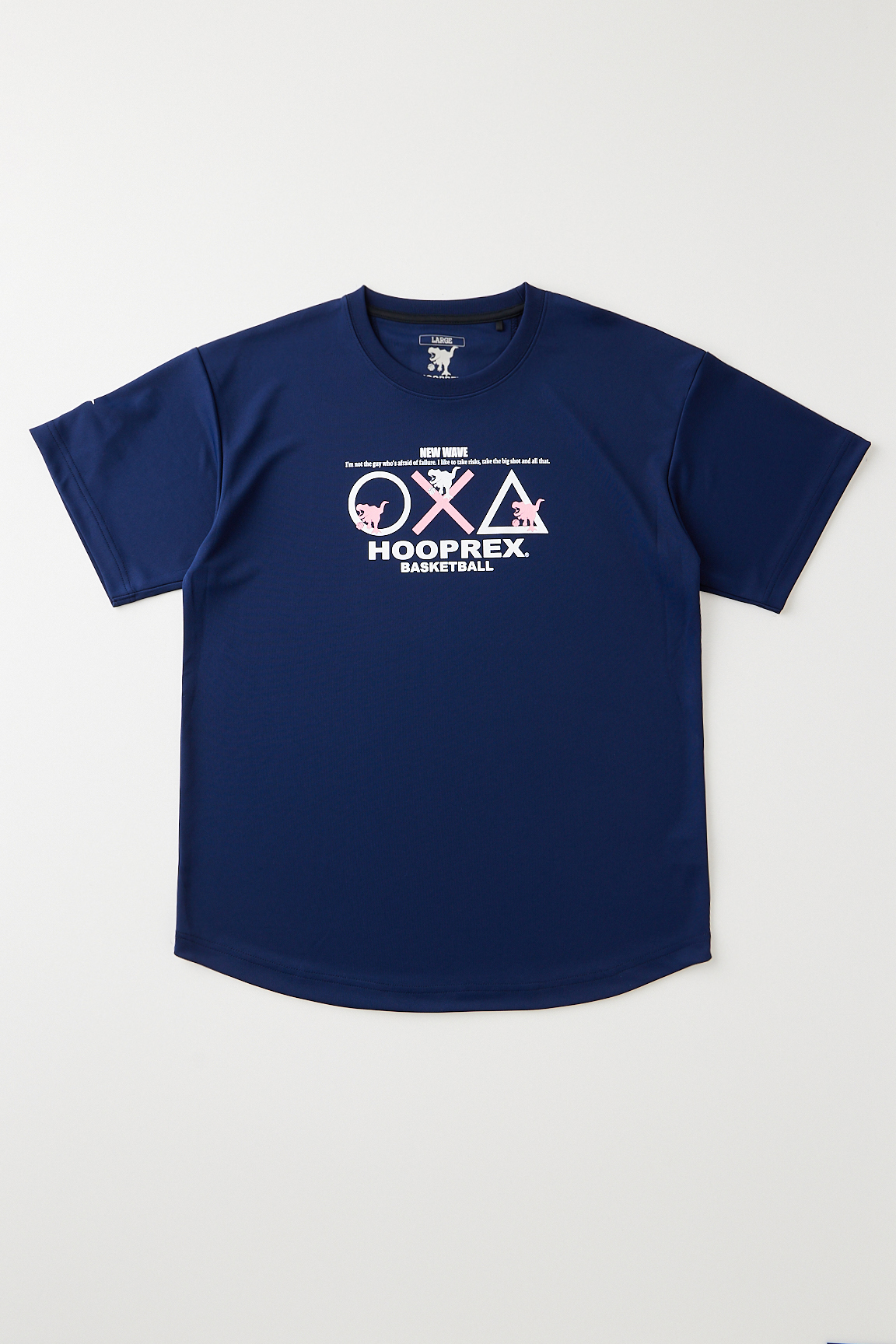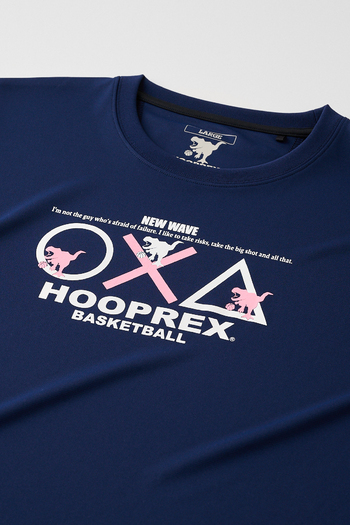 HOOPREXのスタンダードなTシャツ。裾のラウンドがスタイルアップに、丈短パンツとの相性は抜群です。