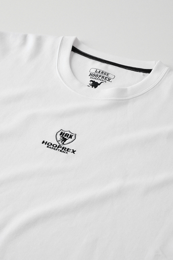 HOOPREXのビッグTシャツ。ゆったりとした身幅と厚手の生地で、日常使いにおすすめしたいアイテム。■刺繍カラーホワイト…ブラックブラック…ホワイト■付属シリコンワッペン(右袖)刺繍(背中首元)