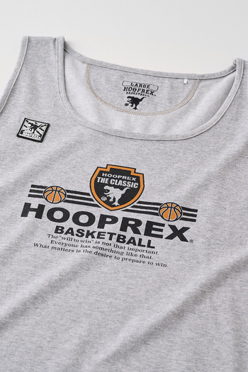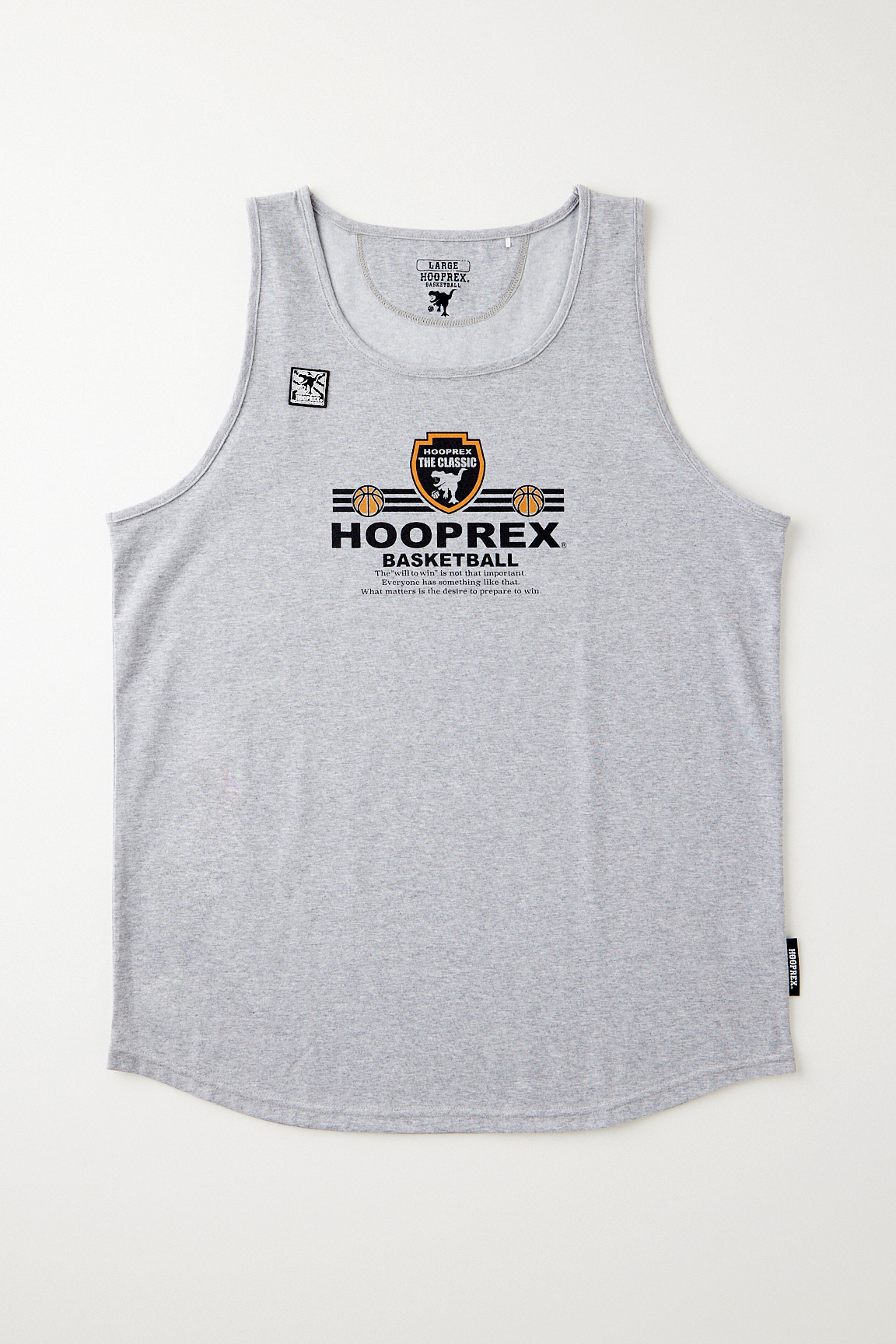 HOOPREXのタンクトップ。HRライクコットンという新素材を採用した綿のような風合いのアイテム。吸水速乾性のある生地は裾をラウンドさせることで身体にフィットし丈短パンツとの相性は抜群。■プリントカラーホワイト…ブラック、テキサスグレー杢…ブラック、テキサスブラック…ホワイト、テキサス■サイズレンジS・M・L・XL・2XL■付属シリコンワッペン(左胸)刺繍(背中首元)ピスネーム(本体左下)