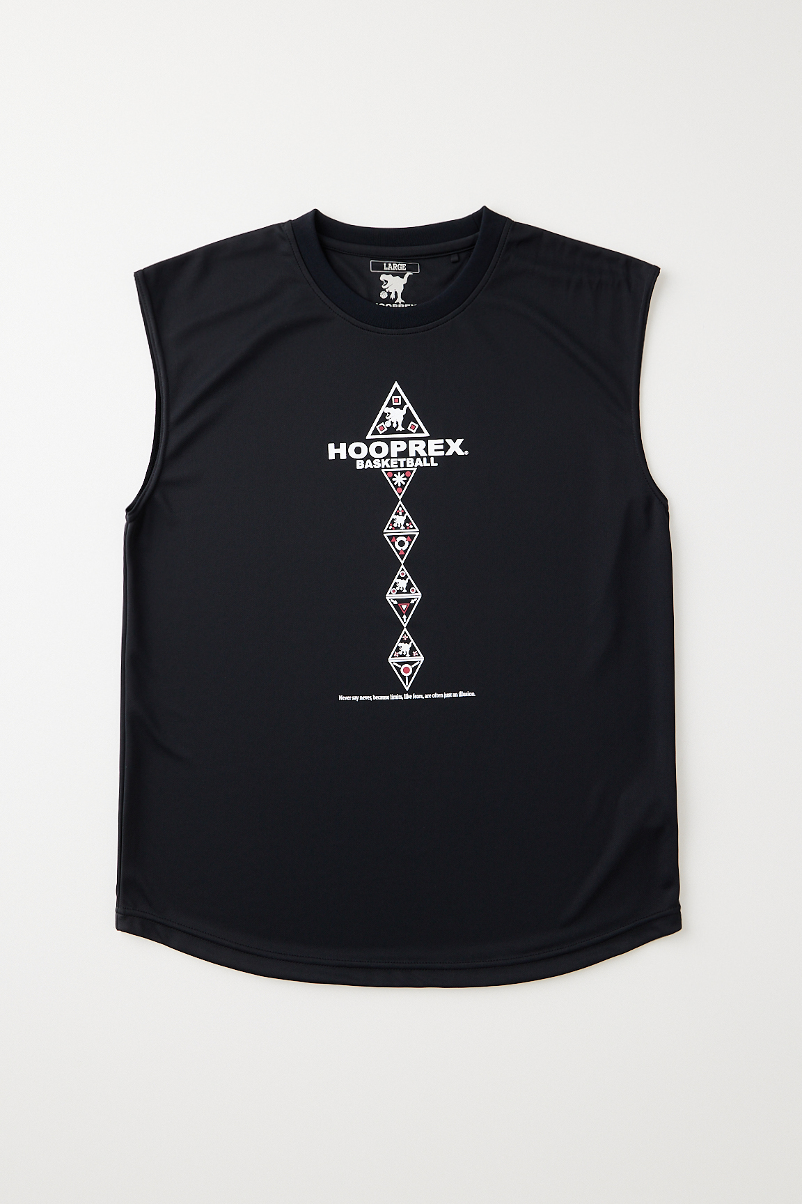 HOOPREXのスリーブレスシャツ。サラサラとした肌触りが汗ばむ季節に心地よいアイテム。裾をラウンドさせることで身体にフィットし丈短パンツとの相性は抜群。■プリントカラーホワイト…ブラック、テキサスネイビー…ホワイト、ライトブルーブラック…ホワイト、ワイン■サイズレンジS・M・L・XL・2XL■付属シリコンワッペン(左胸)刺繍(背中首元)ピスネーム(本体左下)