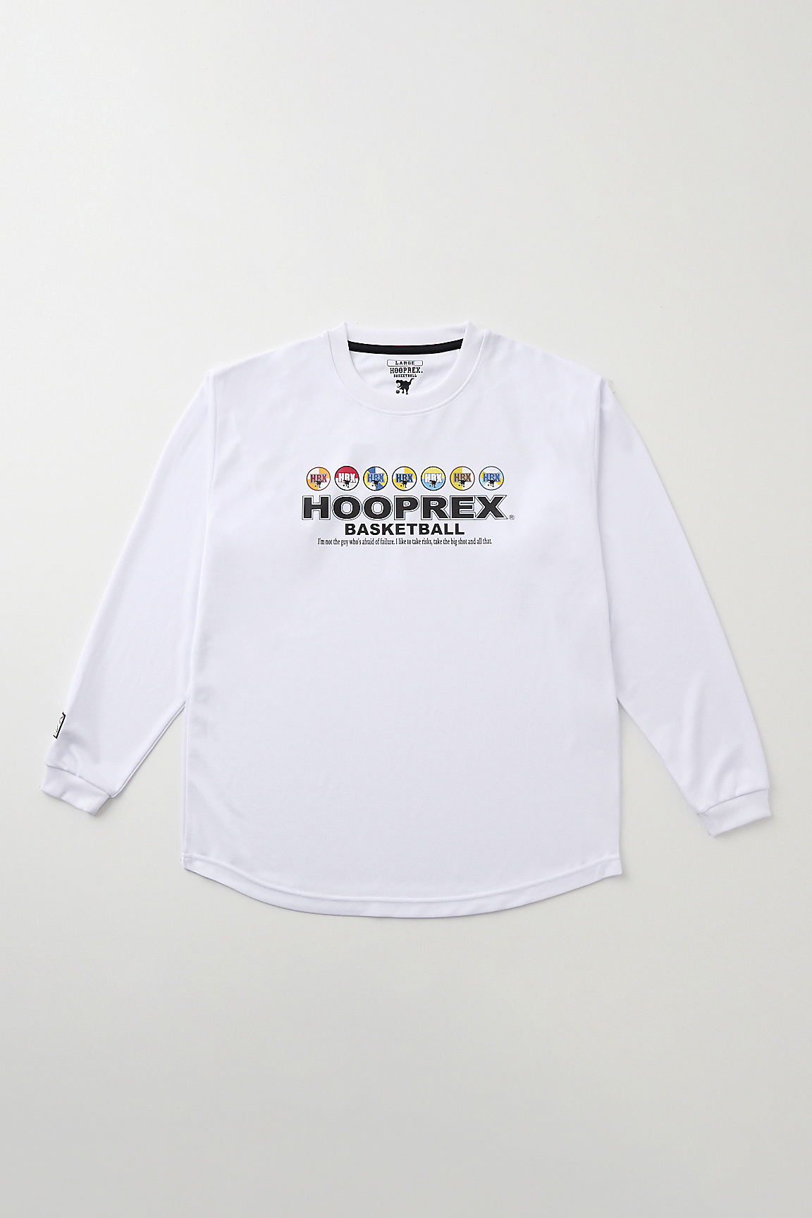 HOOPREXのスタンダードなロングスリーブシャツ。ストライプ柄でプリントされたHOOPREXのロゴが目を引くデザイン。裾のラウンドがスタイルアップに、丈短パンツとの相性は抜群です。DTFプリントという加工でプリントされています。HRXP-086とのセットアップデザインです。■サイズレンジS・M・L・XL・2XL■付属刺繍(右袖口、背中首元)