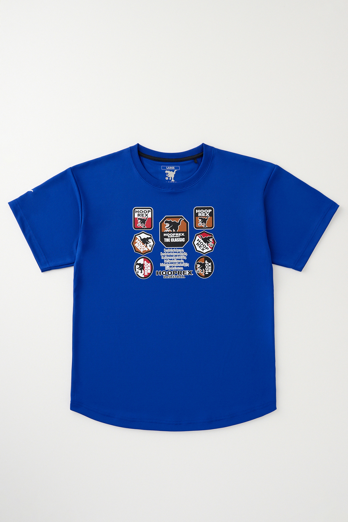 HOOPREXのスタンダードなTシャツ。裾のラウンドがスタイルアップに、丈短パンツとの相性は抜群です。