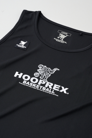 HOOPREXのタンクトップ。吸水速乾性のある生地は裾をラウンドさせることで身体にフィットし丈短パンツとの相性は抜群。