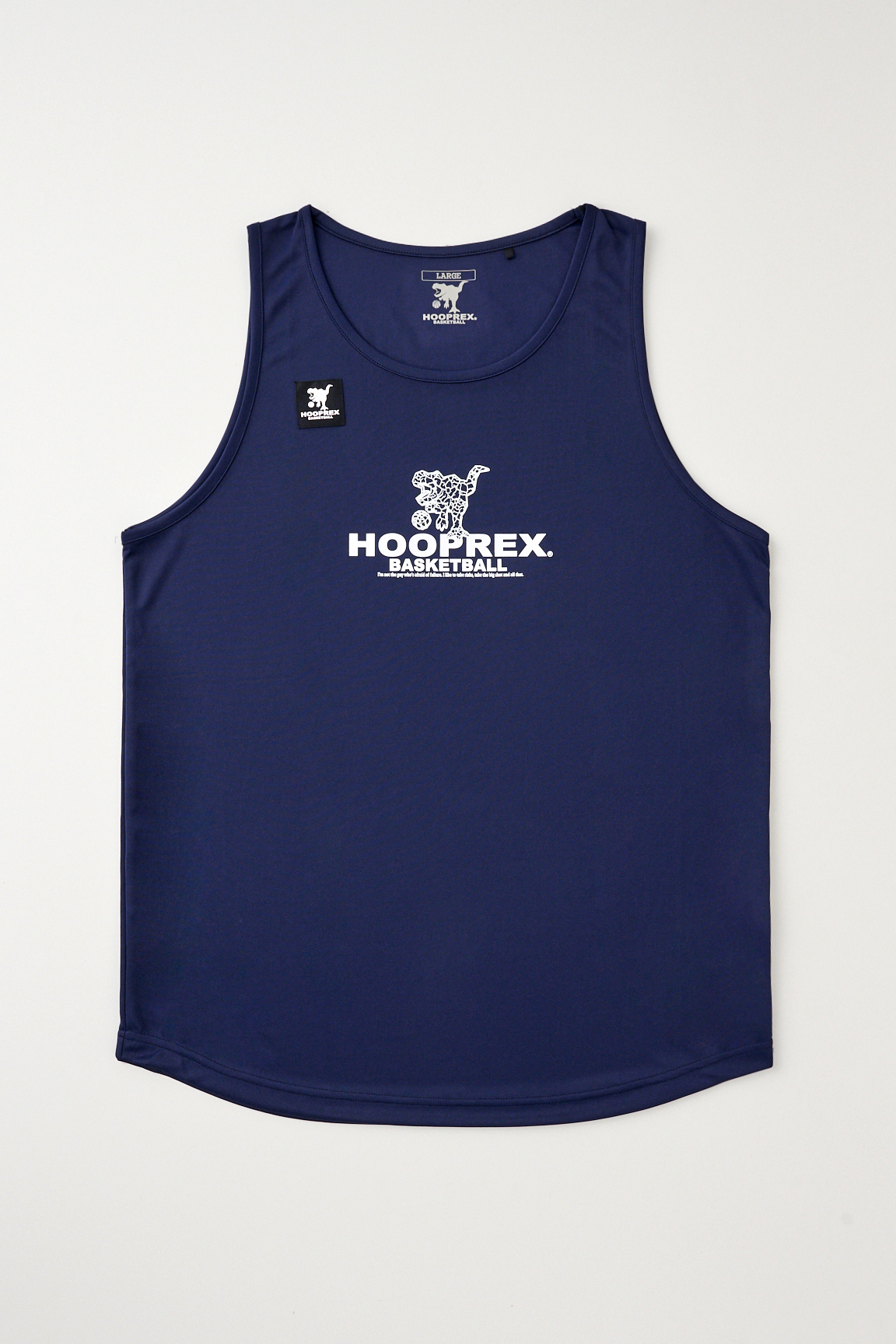 HOOPREXのタンクトップ。吸水速乾性のある生地は裾をラウンドさせることで身体にフィットし丈短パンツとの相性は抜群。