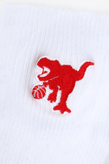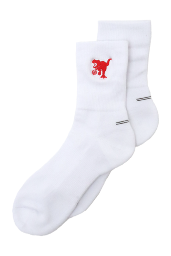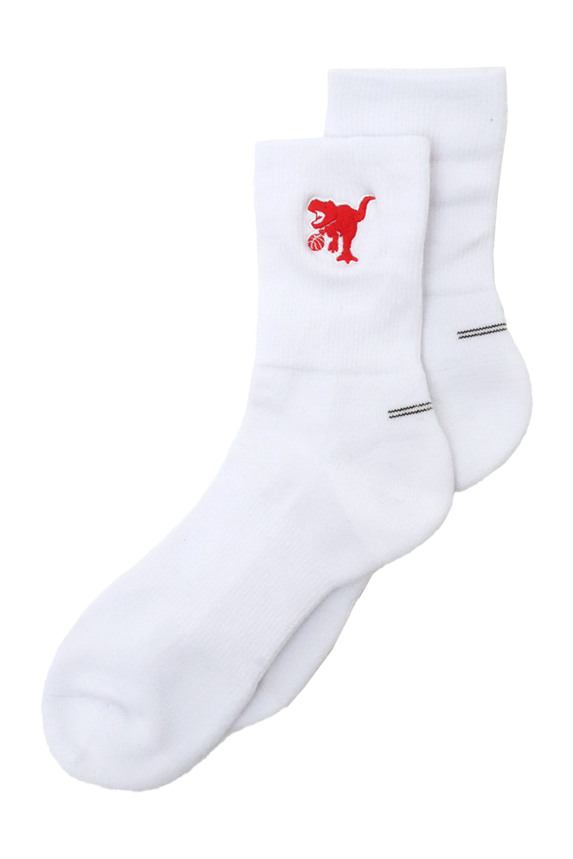 HOOPREXのセミロングソックス(17cm丈)。ワンポイント刺繍加工された全20色。あみ糸4本取りのボリューム感で足への衝撃を和らげ、つま先の補強糸でほつれを軽減し。アーチ部分のゴム補強による適度な締め付けにより、シューズ内での安定感を増強。吸水発汗糸を使用した高機能ソックス。