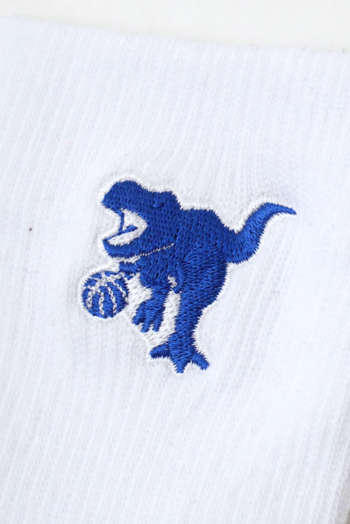 HOOPREXのセミロングソックス(17cm丈)。ワンポイント刺繍加工された全20色。あみ糸4本取りのボリューム感で足への衝撃を和らげ、つま先の補強糸でほつれを軽減し。アーチ部分のゴム補強による適度な締め付けにより、シューズ内での安定感を増強。吸水発汗糸を使用した高機能ソックス。