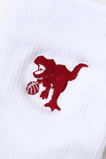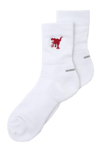 HOOPREXのセミロングソックス(17cm丈)。ワンポイント刺繍加工された全20色。あみ糸4本取りのボリューム感で足への衝撃を和らげ、つま先の補強糸でほつれを軽減し。アーチ部分のゴム補強による適度な締め付けにより、シューズ内での安定感を増強。吸水発汗糸を使用した高機能ソックス。