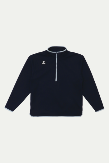 HOOPREXのスウェットハーフジップシャツ。軽くてソフトな膨らみ感が心地よく、適度なストレッチ性でプラクティスウェアにおすすめ。毛玉ができにくく縮みが少ない素材です。両サイドにポケット付き。