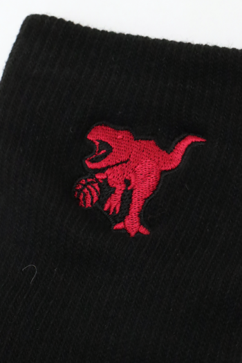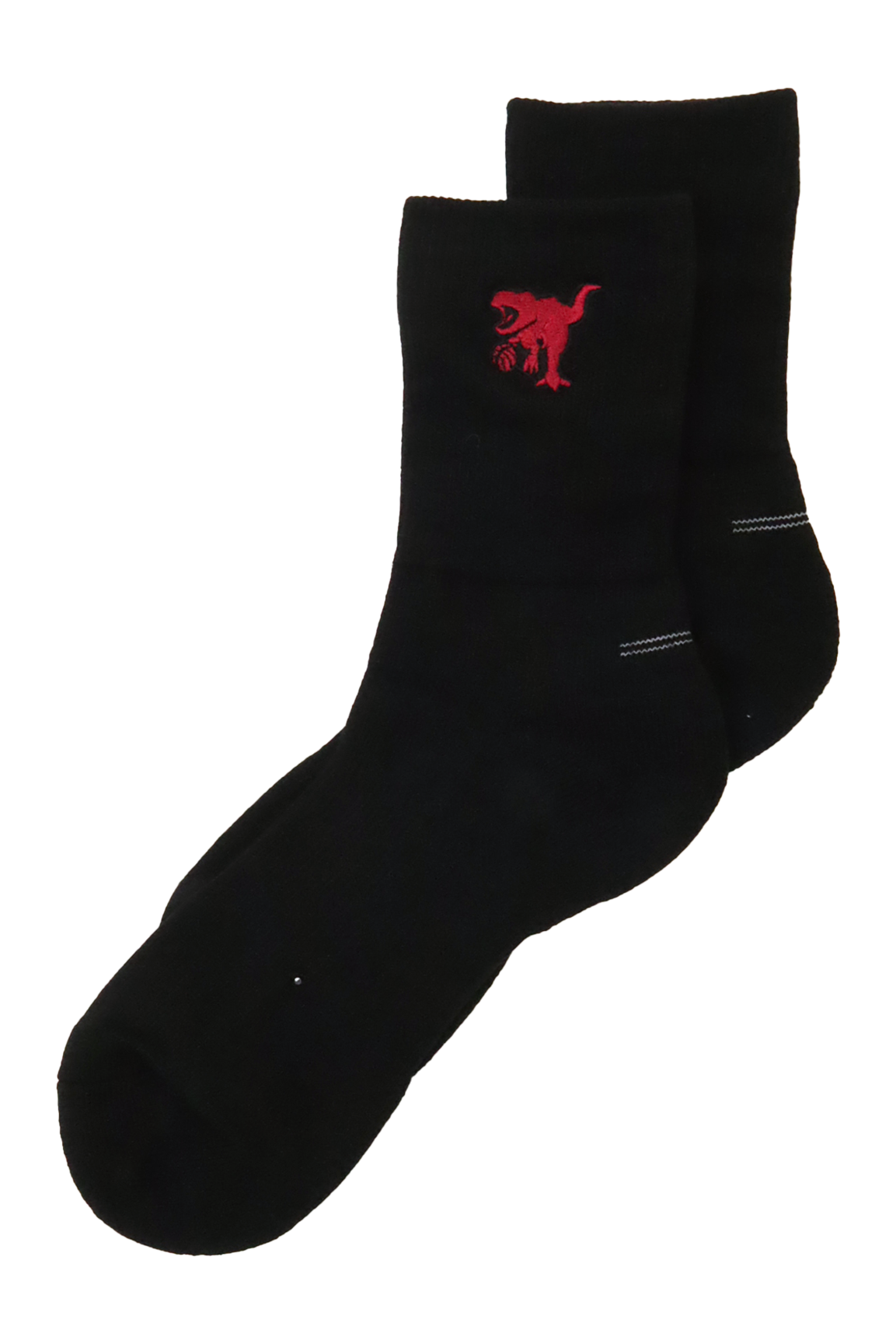 HOOPREXのセミロングソックス(17cm丈)。ワンポイント刺繍加工された全20色。あみ糸4本取りのボリューム感で足への衝撃を和らげ、つま先の補強糸でほつれを軽減し。アーチ部分のゴム補強による適度な締め付けにより、シューズ内での安定感を増強。吸水発汗糸を使用した高機能ソックス。