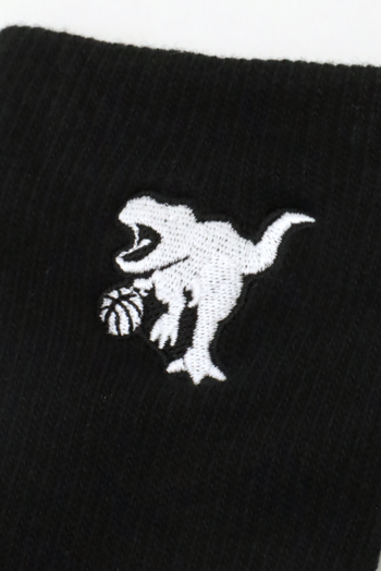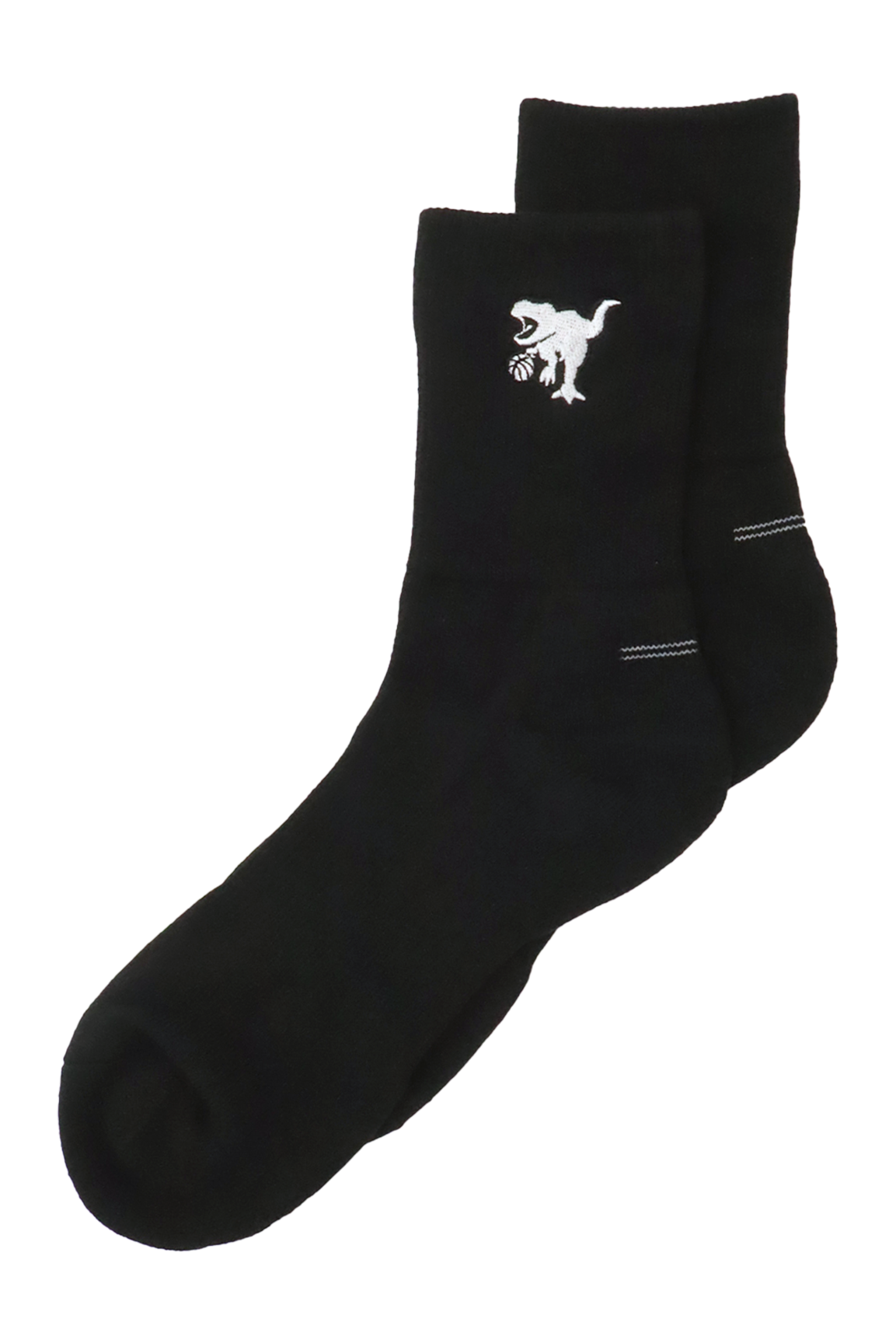 HOOPREXのセミロングソックス(17cm丈)。ワンポイント刺繍加工された全20色。あみ糸4本取りのボリューム感で足への衝撃を和らげ、つま先の補強糸でほつれを軽減し。アーチ部分のゴム補強による適度な締め付けにより、シューズ内での安定感を増強。吸水発汗糸を使用した高機能ソックス。