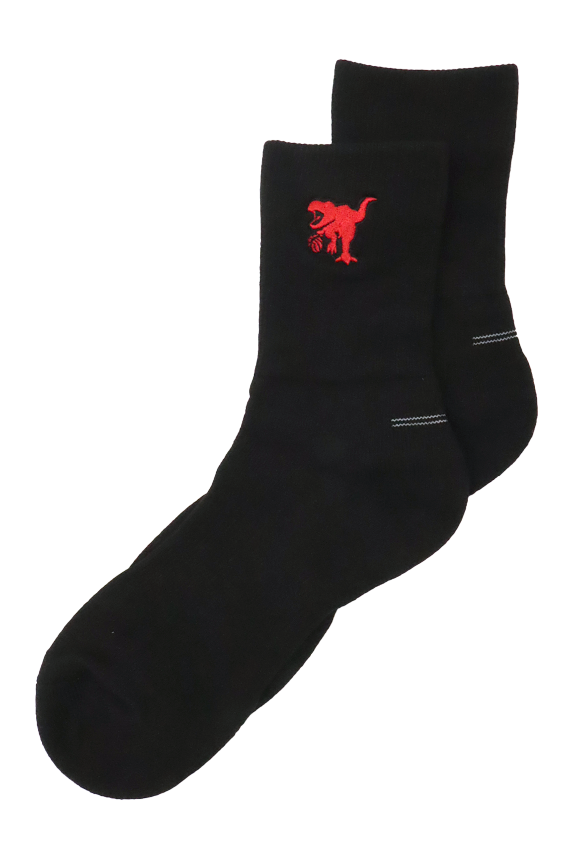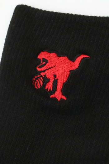 HOOPREXのセミロングソックス(17cm丈)。ワンポイント刺繍加工された全20色。あみ糸4本取りのボリューム感で足への衝撃を和らげ、つま先の補強糸でほつれを軽減し。アーチ部分のゴム補強による適度な締め付けにより、シューズ内での安定感を増強。吸水発汗糸を使用した高機能ソックス。