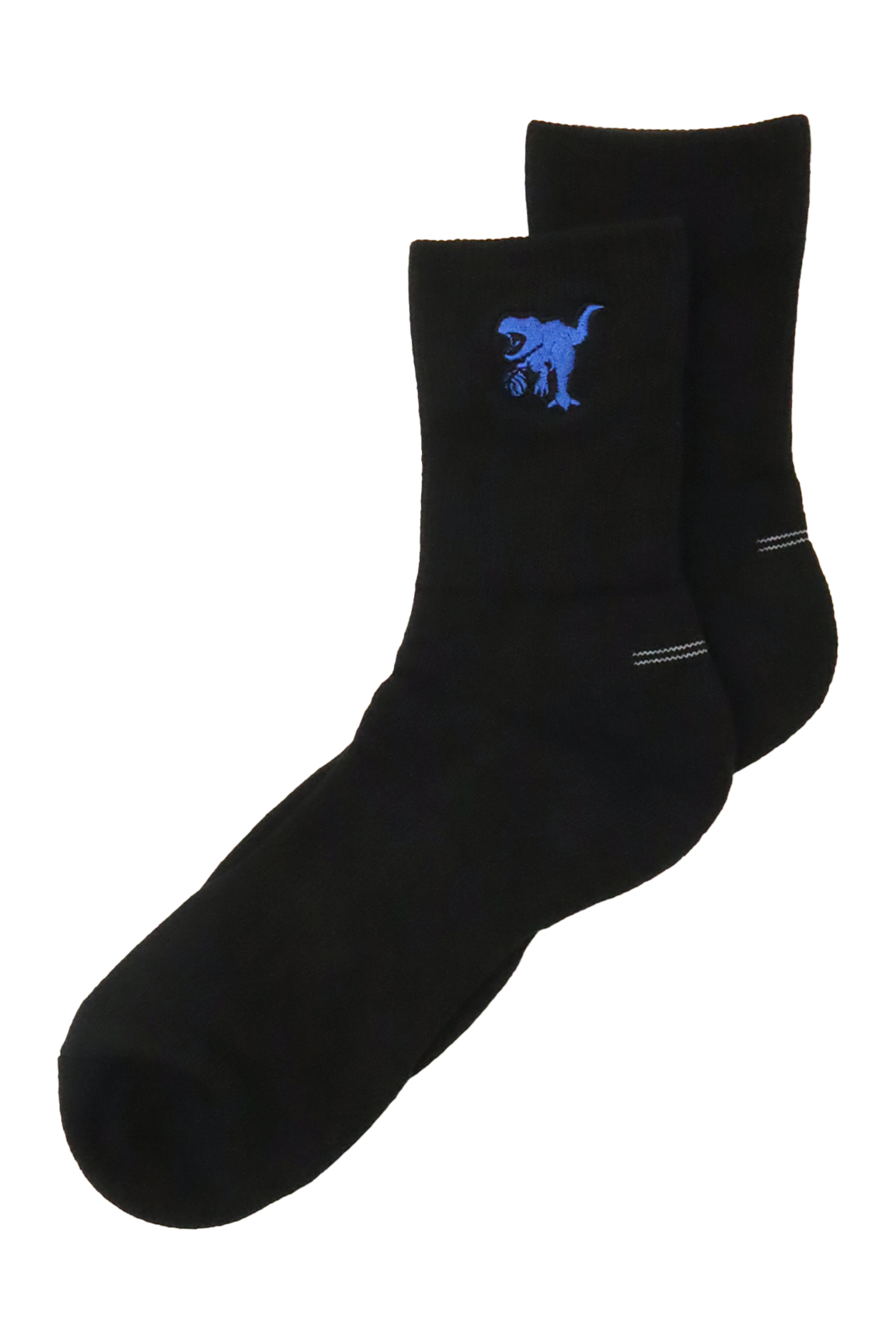HOOPREXのセミロングソックス(17cm丈)。ワンポイント刺繍加工された全20色。あみ糸4本取りのボリューム感で足への衝撃を和らげ、つま先の補強糸でほつれを軽減し。アーチ部分のゴム補強による適度な締め付けにより、シューズ内での安定感を増強。吸水発汗糸を使用した高機能ソックス。