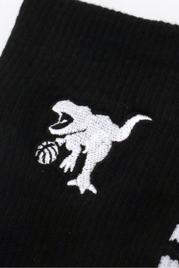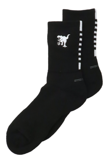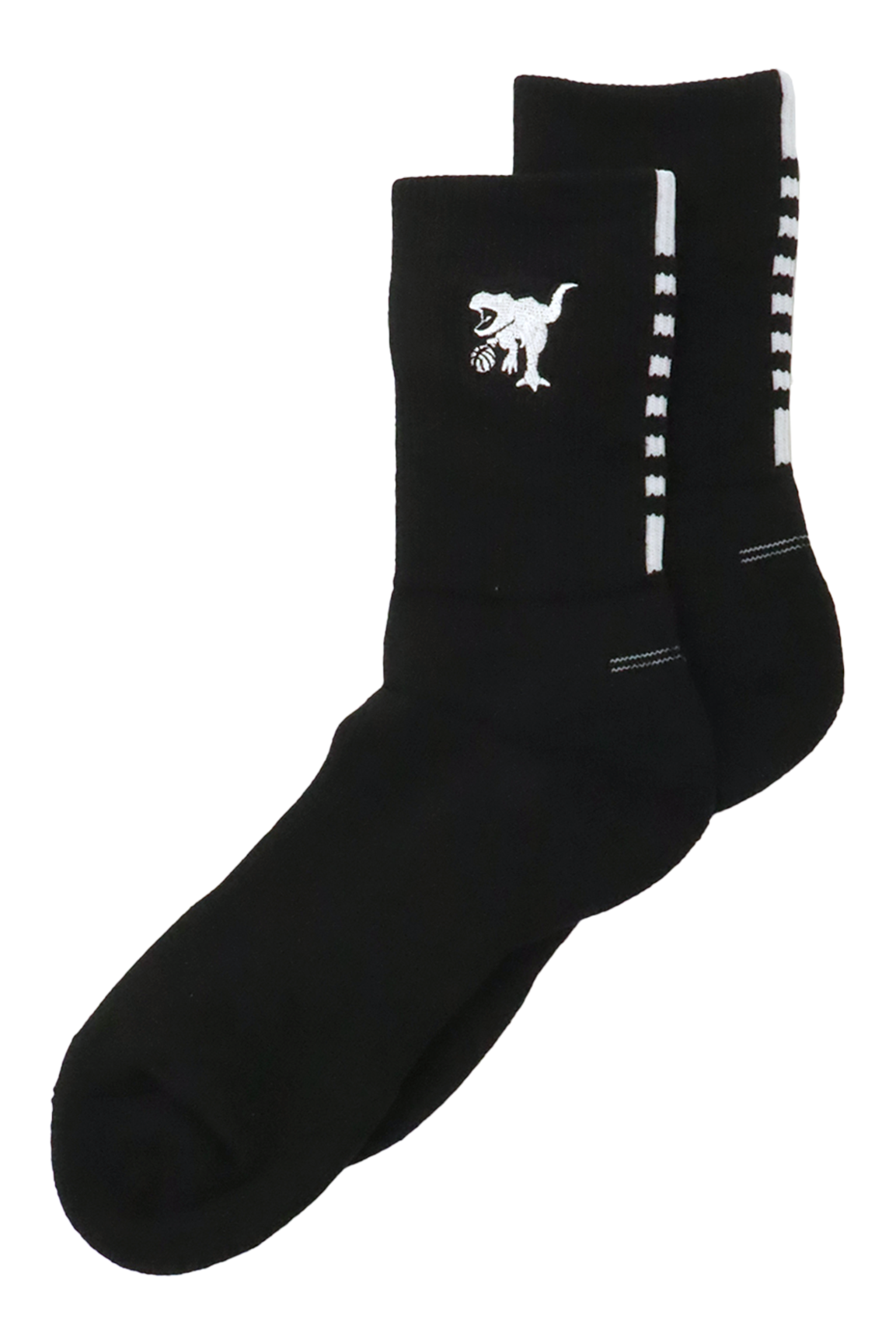 HOOPREXのロングソックス(19cm丈)。ワンポイント刺繍加工された全10色。くるぶしのラインがスマートさを演出。あみ糸4本取りのボリューム感で足への衝撃を和らげ、つま先の補強糸でほつれを軽減し。アーチ部分のゴム補強による適度な締め付けにより、シューズ内での安定感を増強。吸水発汗糸を使用した高機能ソックス。